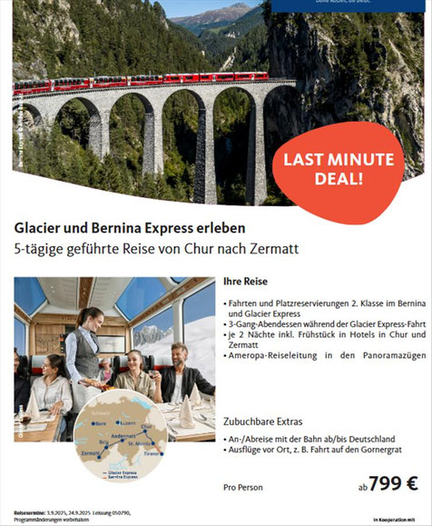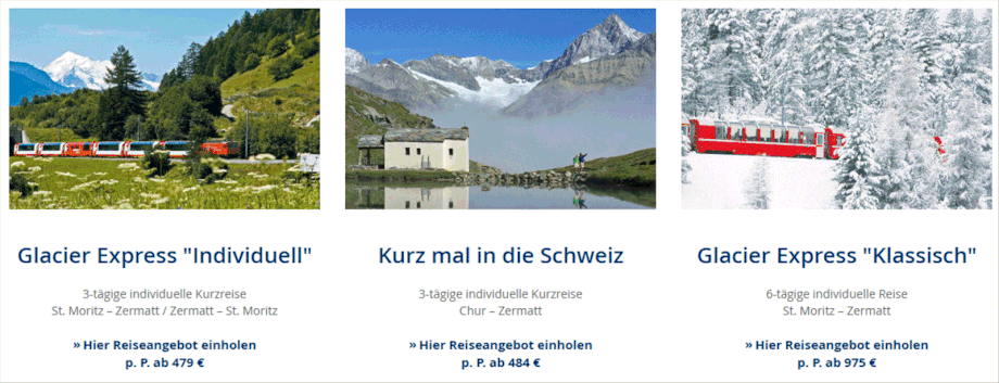 mehrtägige Bahnreisen St.Moritz - Zermatt - Chur...