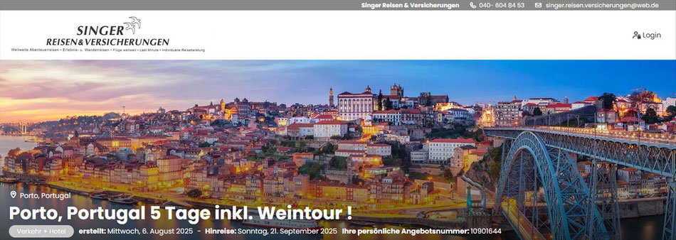 im Frühjahr - Sommer - Herbst und Winter Reiseangebote: z.B die Kombi Porto und Lissabon, Städtereisen, Fly & Drive, Appartements, Ferienwohnungen, Hotels, Mietwagen, inkl Besichtigungen und Portweintastings bei Singer Reisen und Portweinhandel Hamburg buchen...